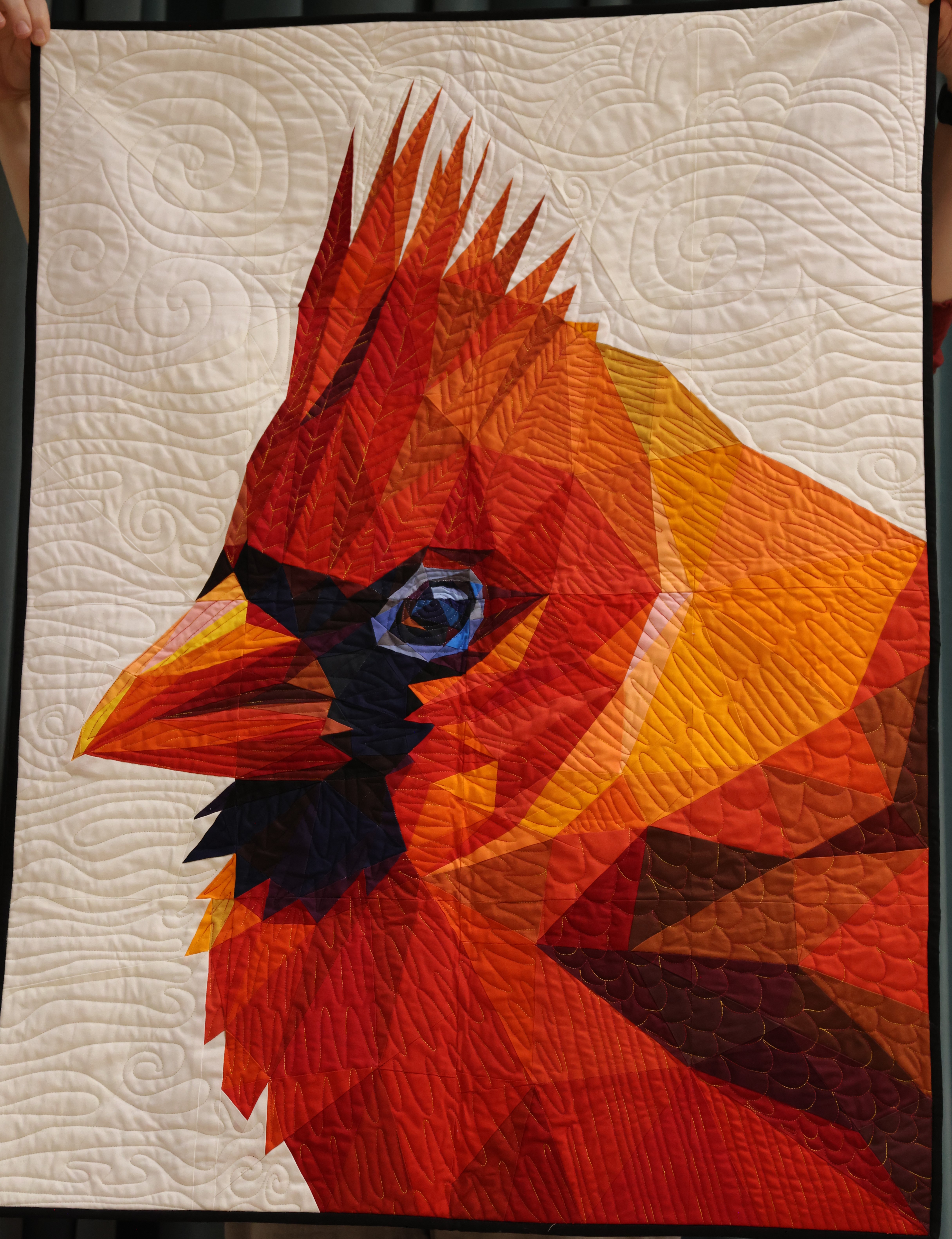 (8) Karen Crawford - Saw this quilt hanging at Springville Quilt Museum. Used triangles on a roll for the triangles. Red has a lot of different shades.