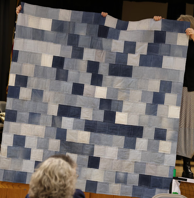 1. Sarah Yorgason – Recently completed service quilts. Kits are available to complete in the back. Squares.